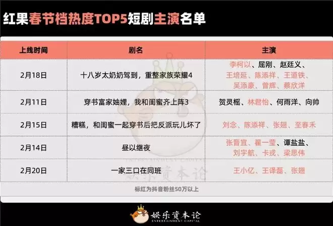 从数据来看,今年短剧春节档显得“红红火火”,短剧热度高,演员涨粉多,不少厂牌也靠春节档爆剧打出了名声。