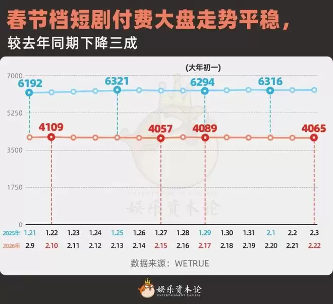 娱乐资本论了解到,今年与去年最大的不同是取消了更高的保底系数(数读2025短剧春节档),去年有头部承制方能拿到5倍系数,比平日还多1.25倍。但今年春节档的政策换成提供更多站内站外的宣推资源,比如会在上新日历中标注“春节首发”,给予更多首页推荐位与推流资源,组织主演进行直播剧宣等。