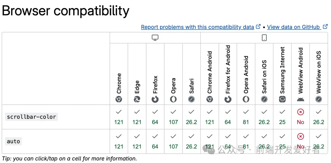 Scrollbar-color 现已正式进入 Baseline Newly Available 阶段,这标志着它已成为一项跨主流浏览器通用的标准能力,可以放心地应用于生产环境。