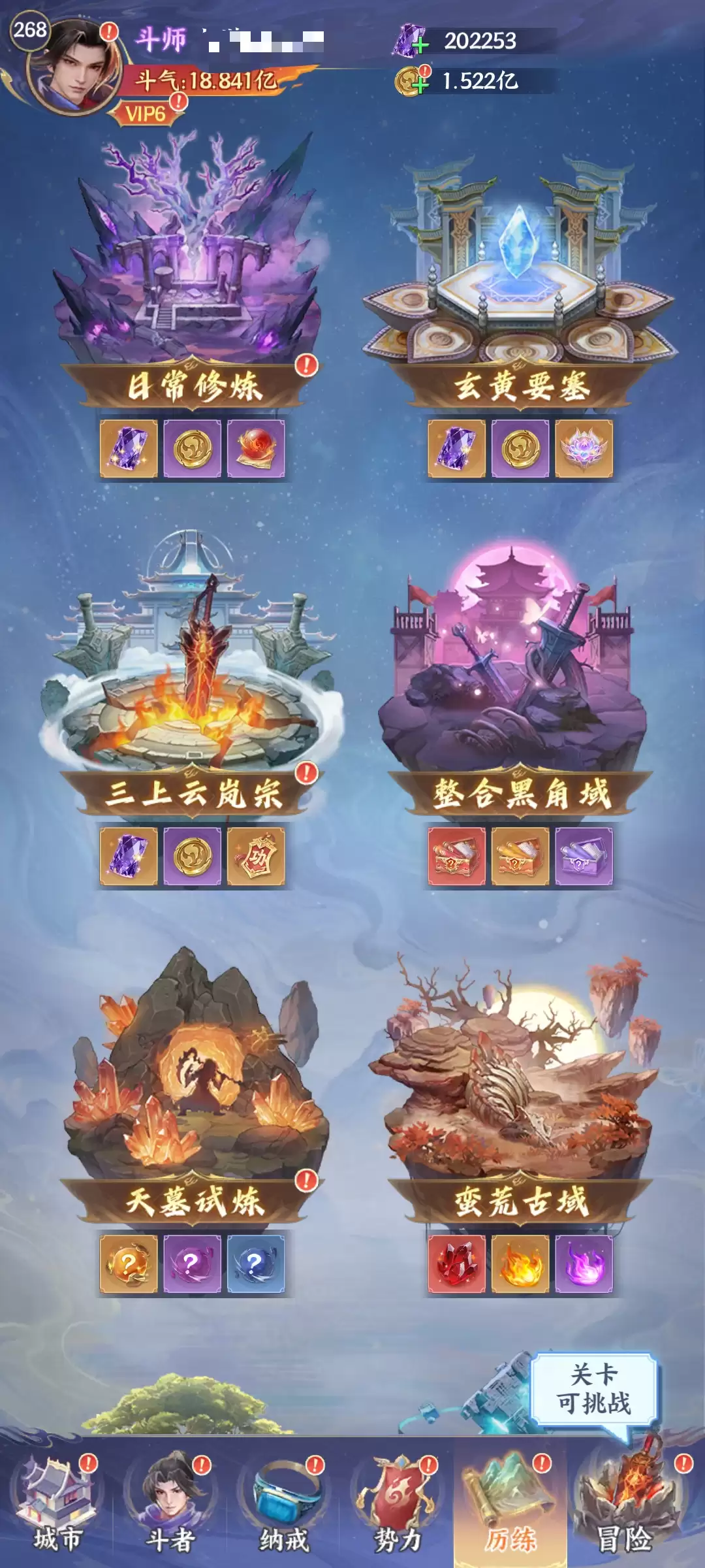 其次,玩家每日可以积极参与各类副本与限时活动。例如“药老试炼”、“学院修行”、“斗气阁”和“秘境活动”等,这些玩法的整体难度并不高,单人即可轻松通关。一旦顺利通过,玩家就能获得颇为丰厚的奖励。因此,每天只需花费半小时左右,就能快速填补斗气值的缺口。