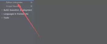 在弹出的设置窗口中,找到并点击"Project: [您的项目名称]",然后选择"Python Interpreter"选项。