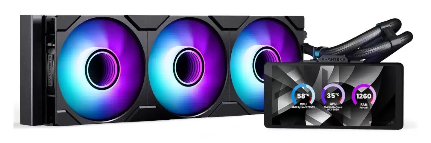 IT之家2月27日消息,Phanteks追风者近日发布了新款一体式水冷散热器Glacier One 360M25-LCD。这款产品在冷头上配备了可调节角度和位置的6英寸IPS LCD显示模块,分辨率为1480×720,刷新率60Hz,亮度达250nits。