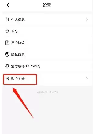 在设置菜单中,找到并点击“账户安全”选项,如下图所示。