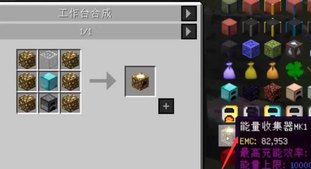 1、在工作台使用钻石块、玻璃和萤石合成能量收集器。