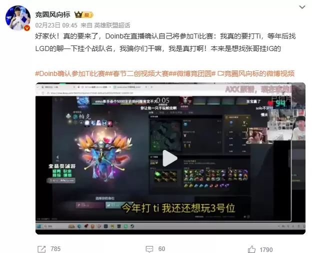 Doinb、小叮当参战DOTA2,宝可梦S6三月开赛