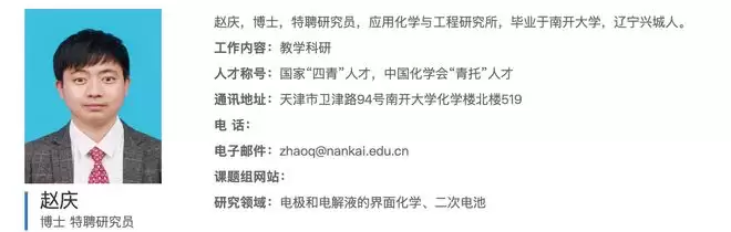 本研究由南开大学化学学院研究员赵庆,中国科学院院士、南开大学常务副校长陈军,联合上海空间电源研究所研究员李永共同完成。