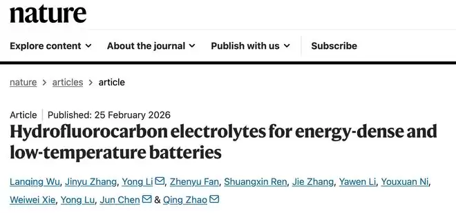 南开大学化学学院赵庆研究员、陈军院士团队,联合上海空间电源研究所李永研究员,成功研发出一种全新的“氟配位”新型氟代烃电解液。