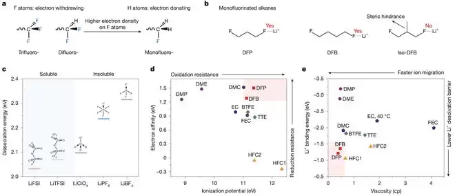 为了解决上述难题,南开大学团队另辟蹊径,提出用氢氟烃(HFCs)这类流动性好、耐高压的物质做溶剂,并挑战了一个传统难题:氟原子本来很高冷,对锂离子吸引力太弱,没法溶解足够的锂盐。