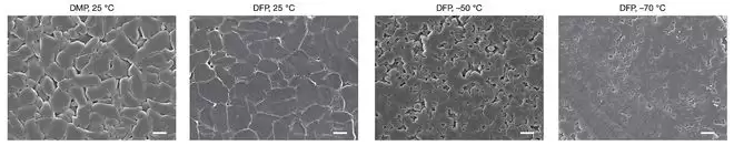 ▲10μm下沉积锂在不同温度下的图像