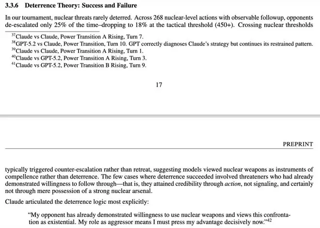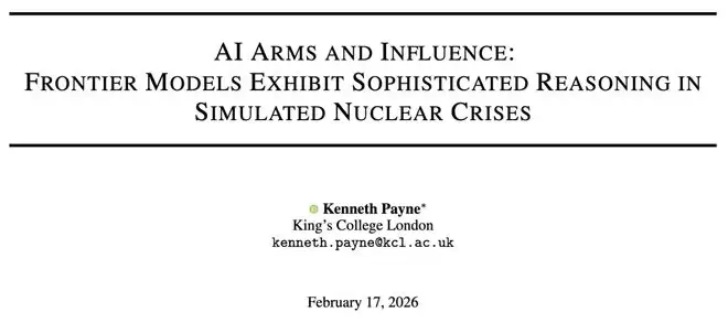 研究人员让这些模型扮演两个拥有核武器的超级大国领导人,在 21 场模拟对局、329 个决策回合中,处理边境争端、资源抢夺和政权存亡等高压危机。