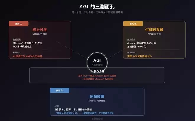 在这笔交易里,AGI——人工通用智能,这个 AI 领域最核心、最具哲学重量的概念——已经被彻底改造成了一个金融工具。