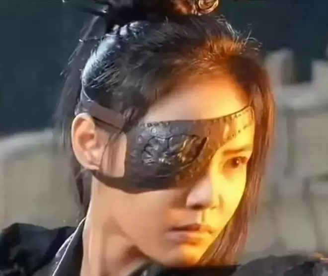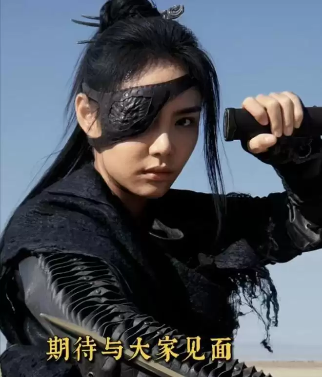 她的造型极具特色,一只黑色眼罩遮去半面容颜,高马尾,一身黑色劲装。