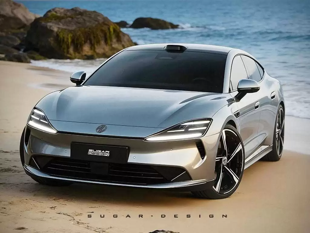 从目前流出的渲染图来看,MG 07的外观设计辨识度极高。溜背式车尾设计是整车的一大亮点,流畅的线条与帕拉梅拉确有几分神似,这也是其被称为“沪上帕美”的原因之一。不过,车头部分的设计也引发了一些讨论。部分网友认为,大灯的造型与保时捷Taycan过于相似,若能在原创性上更进一步,或许能赢得更多认可。即便如此,车顶配备的激光雷达、水滴形后视镜以及翼子板处的风道设计,依然为整车增添了不少科技感与运动气息。