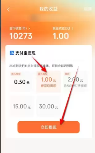2、选择一个提现额度,点击“立即提现”。(部分提现金额可能有额外条件,需要满足条件后才能成功提现)