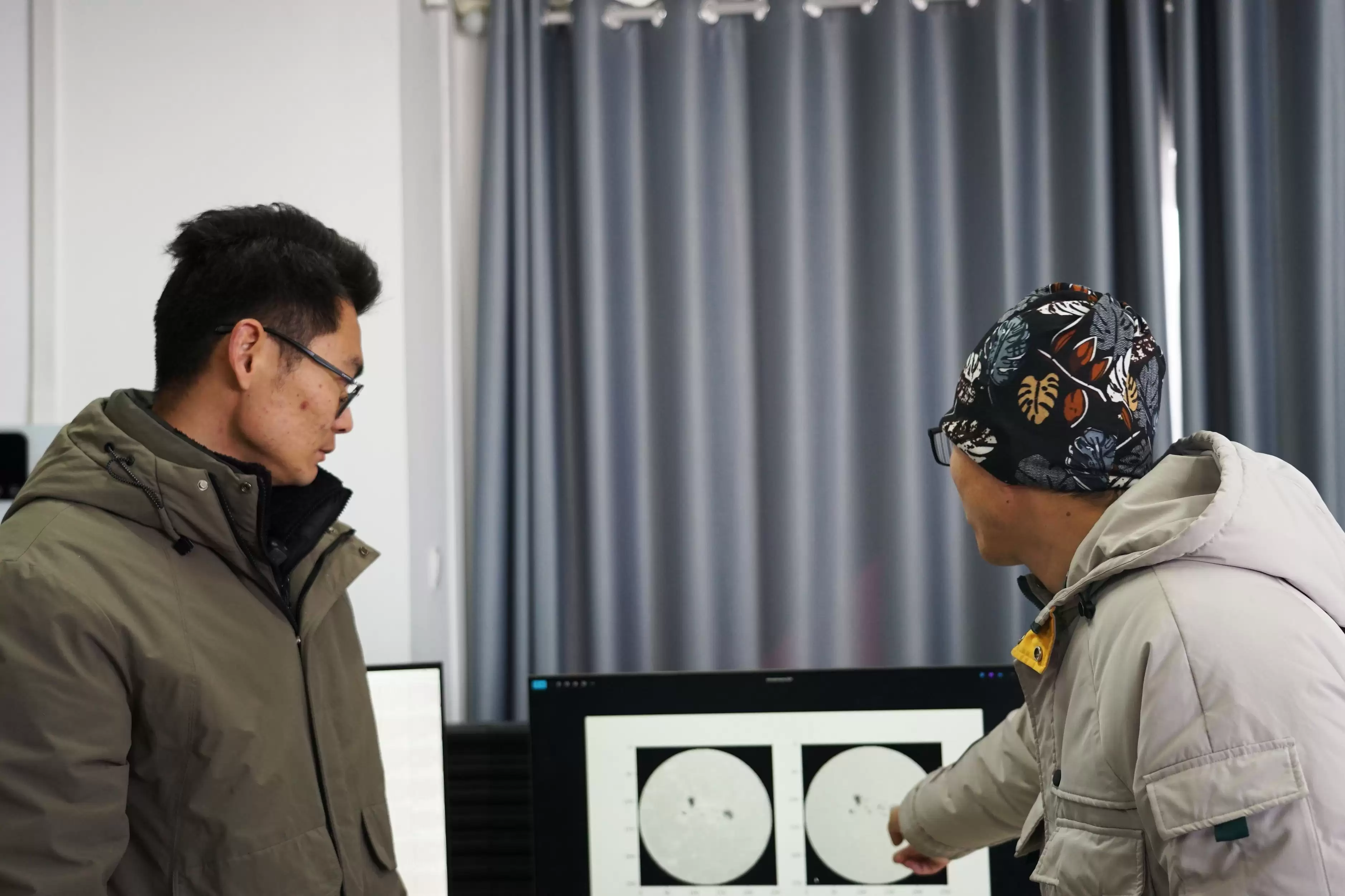 快到中午,当太阳升至观测位,AIMS望远镜的圆顶跟随太阳转动。观测室内,王城森紧盯屏幕,时而切换观测目标、时而标注太阳活动区。他告诉记者:“如果天气晴朗无云,一天的观测可累计约500GB的数据。”