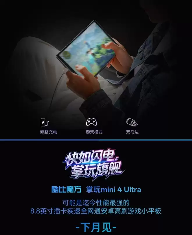 IT之家2月28日消息,今晚酷比魔方官方公众号发布预告,宣布8.8英寸疾速全网通高刷游戏平板“掌玩 mini 4 Ultra”即将在下月亮相。评论区有网友询问“是否会搭载Flyme系统”,官方给出了肯定答复:“正在洽谈适配中”。