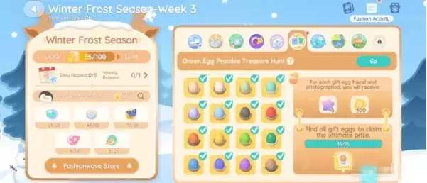 在收集到第16个蛋的照片后,Naughty会立即联系你。他会将配方交给你,但配方不会自动解锁。你需要从屏幕顶部(雪人图标)打开时尚浪潮活动应用,然后按照图示从蛋类收集页面领取温泉蛋配方。