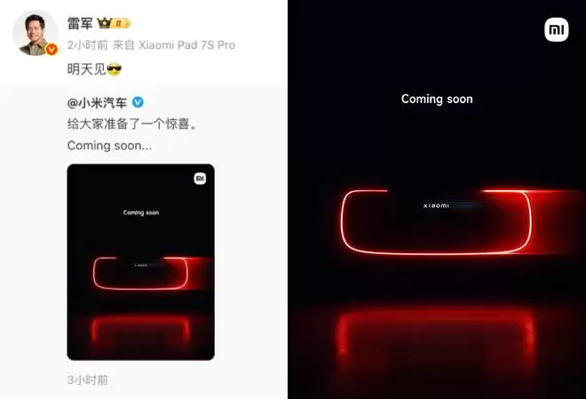 今天(2月28日)早上,小米汽车突然官宣新车Coming soon,雷军更在下方留言「明天见」,瞬间引发热议。