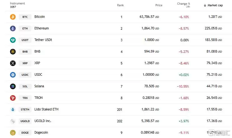 此外,Solana重挫逾10%,狗狗币跌超9%,艾达币下挫8%,XRP跌幅接近9%,BNB也下跌超过5%。