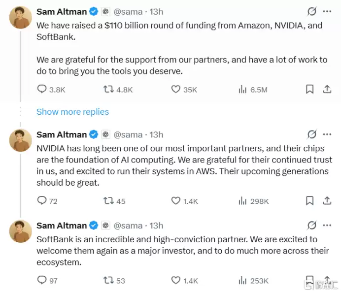 对此,OpenAI创始人Sam Altman在社交平台上接连发文感谢投资方,他同时透露,公司将在合适时机考虑上市。