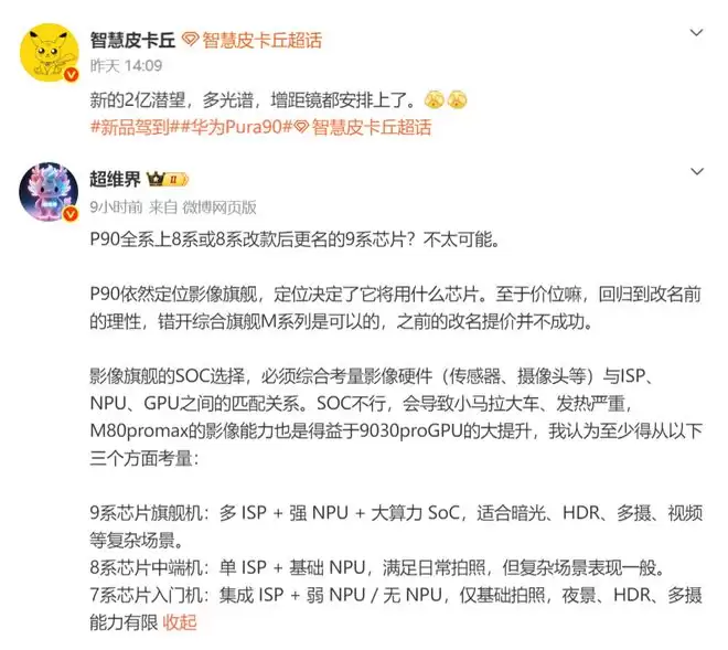 有观点认为Pura 90系列可能全系搭载8系芯片,或者8系改款后更名的9系,但有博主透露仔细想想就知道,这不现实。