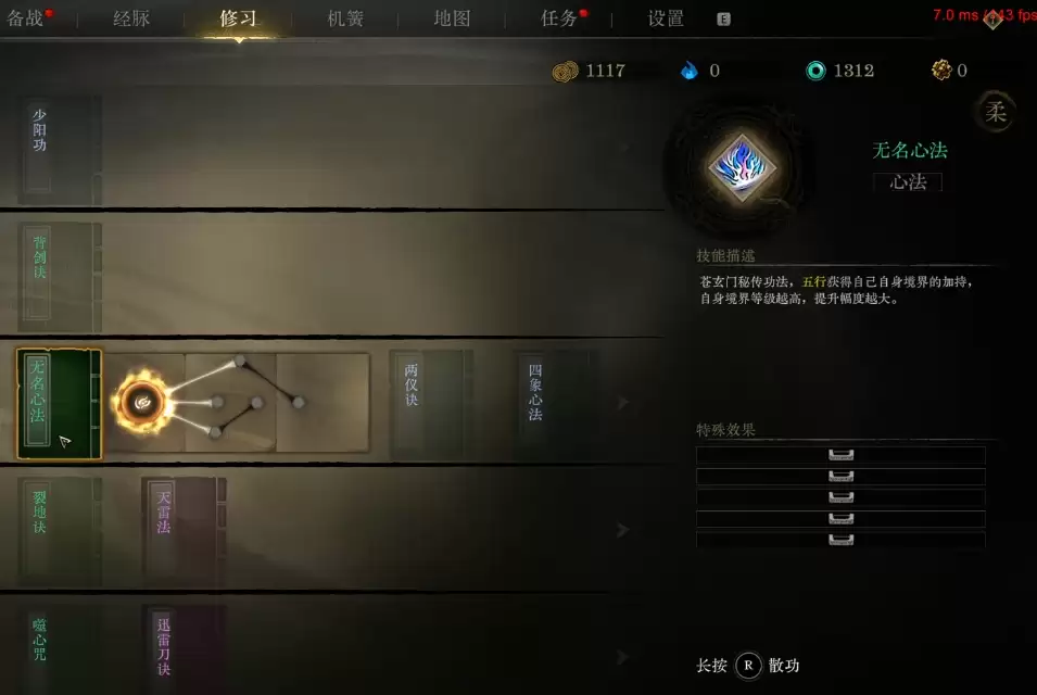 技能成长分为外功(修身)与内功(修心)双轨系统。外功技能点通过挑战各类副本稳定获取,支持自由分配与无损重置,便于玩家试错调整流派;内功修心则采用线性积累机制,每次提升均直接转化为基础属性加成,是战力增长最稳定的底层支撑。