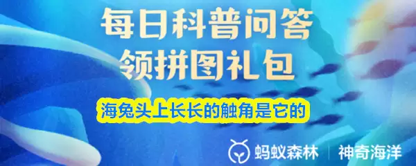海兔头上那对长长的“触角”究竟是什么呢?【神奇海洋】2026年2月28日的新题目已经揭晓答案啦!正确答案现已公布,点击即可领取拼图,一起为修复海洋生态贡献力量!今天的正确答案是:【嗅觉器官】。海兔头上确实有一对长长的“触角”,这其实是它的嗅觉器官,能够探测水中的化学信号,帮助它寻找食物和识别同类。