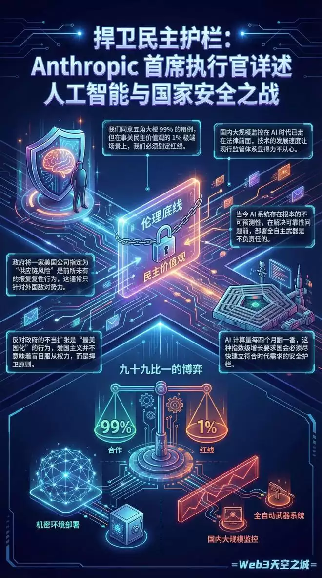 •“我们同意五角大楼 99% 的用例,但在事关民主价值观的 1% 极端场景上,我们必须划定红线。”