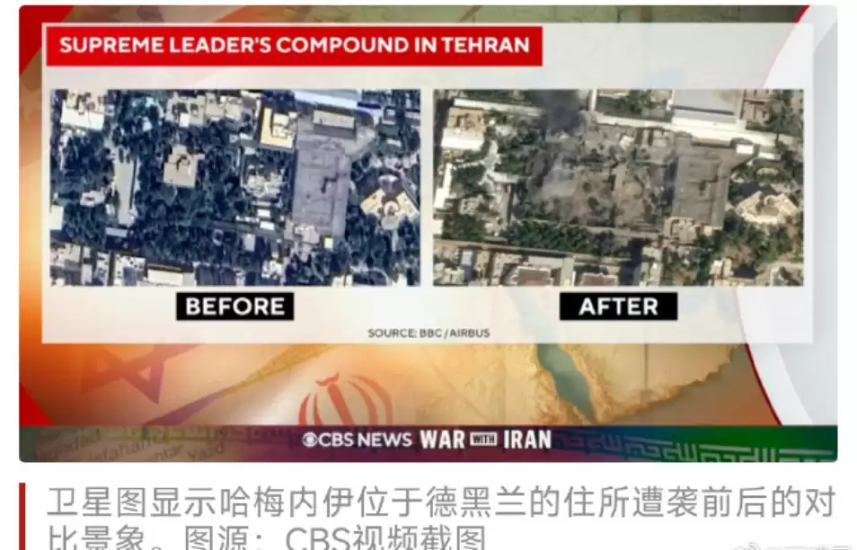 美媒卫星图对比:哈梅内伊住所遭袭前后惊人变化