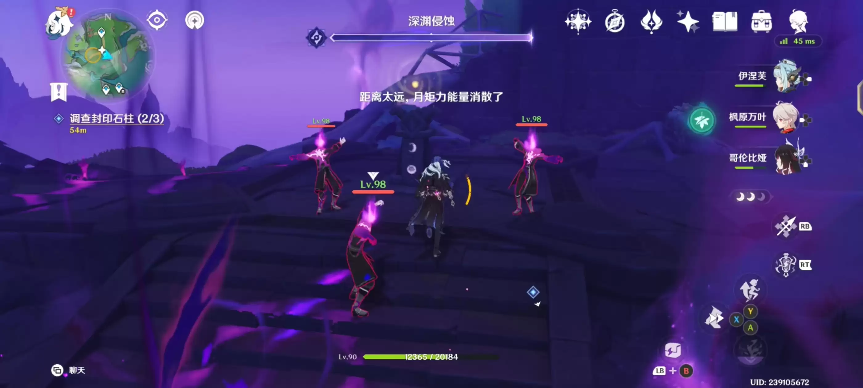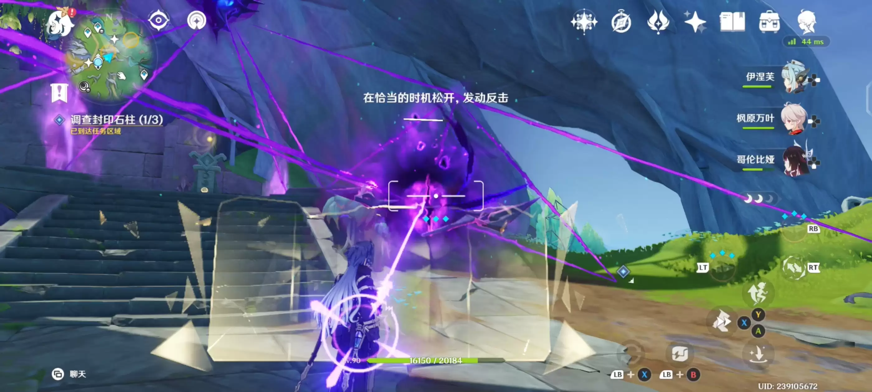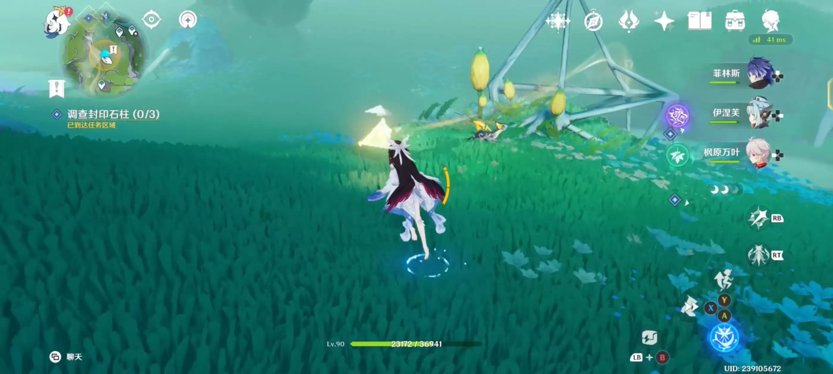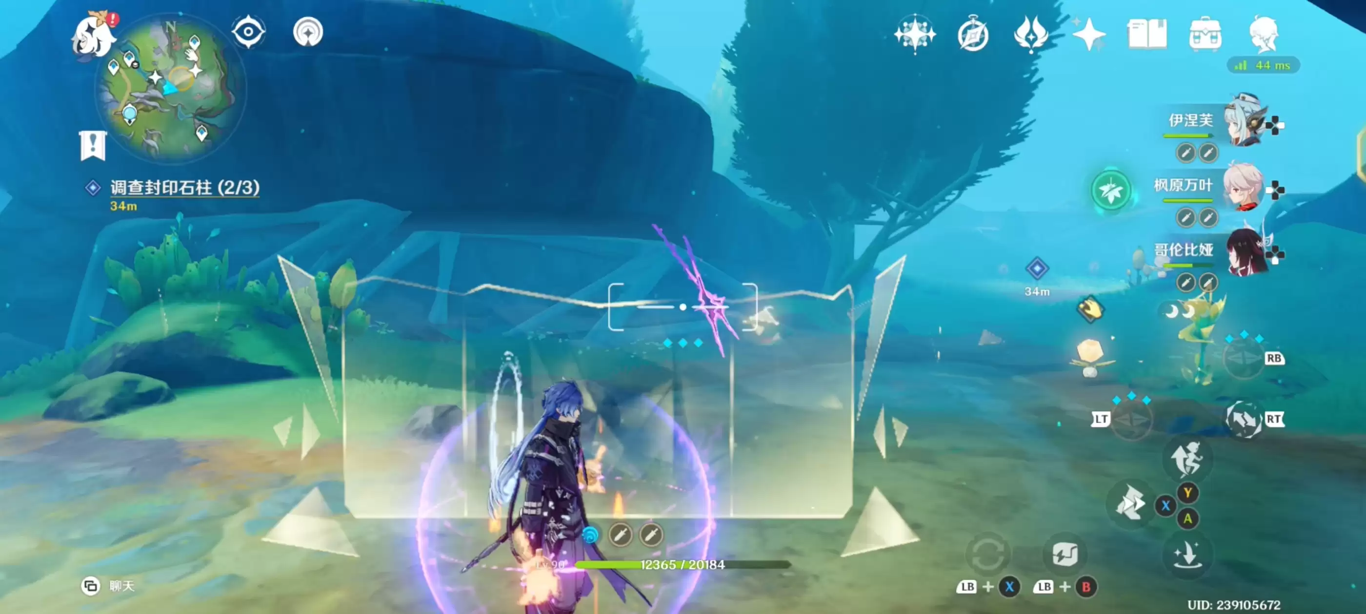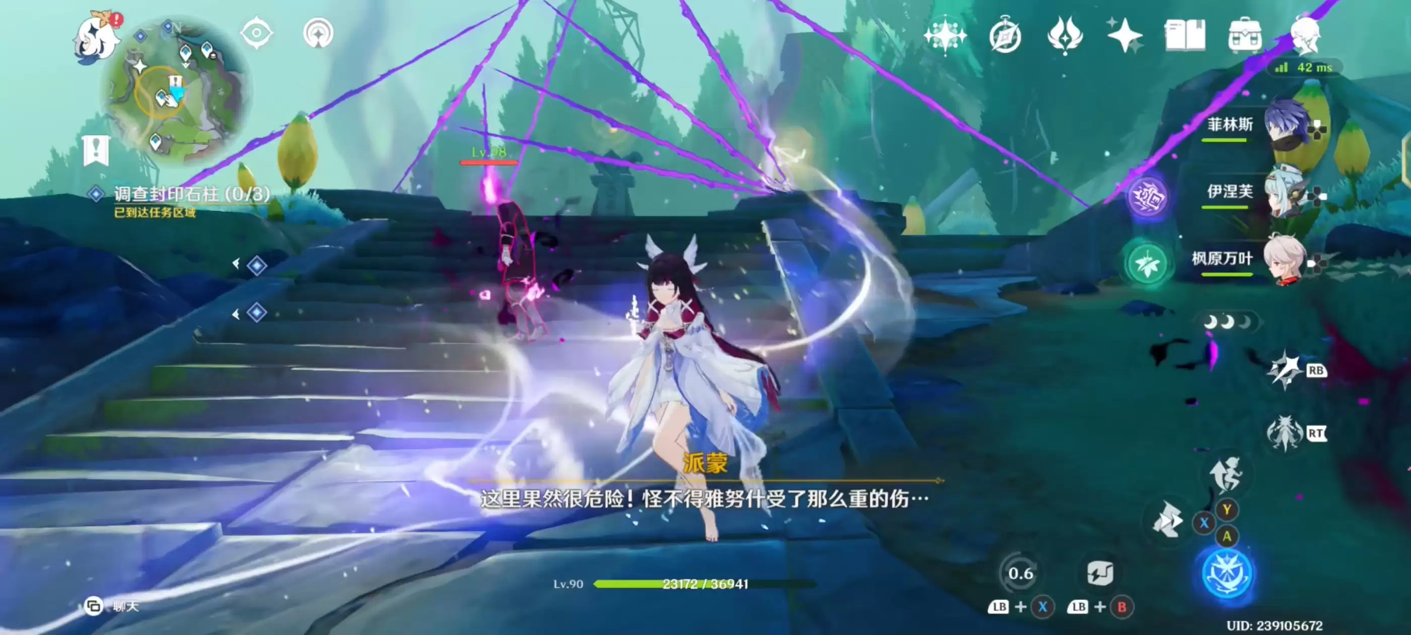 徒步前往下一个任务区域,途中遇到【深渊隙线】时,利用附近的【锋焰花】将其清除,随后触碰棱镜并跟随移动至石柱附近;