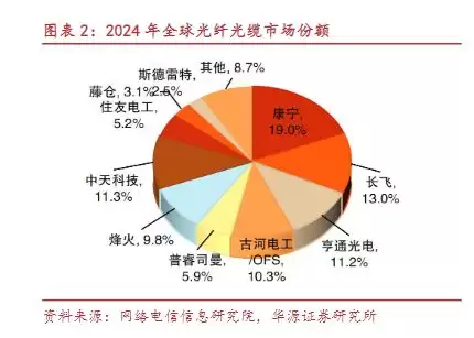 根据网络电信信息研究院统计,2024年全球光纤光缆市场排名前4的厂家合计市占率超过50%。4家企业中3家为中国公司,其中中天科技以11.3%的市场份额居中国第二、全球第三。市场的高集中度,意味着随着需求的上升,光纤价格与毛利率水平的变动亦将更为显著。
