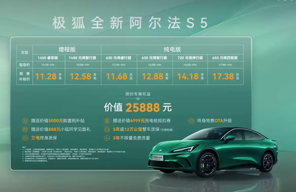极狐阿尔法S5预售开启,11.28万元起享补贴