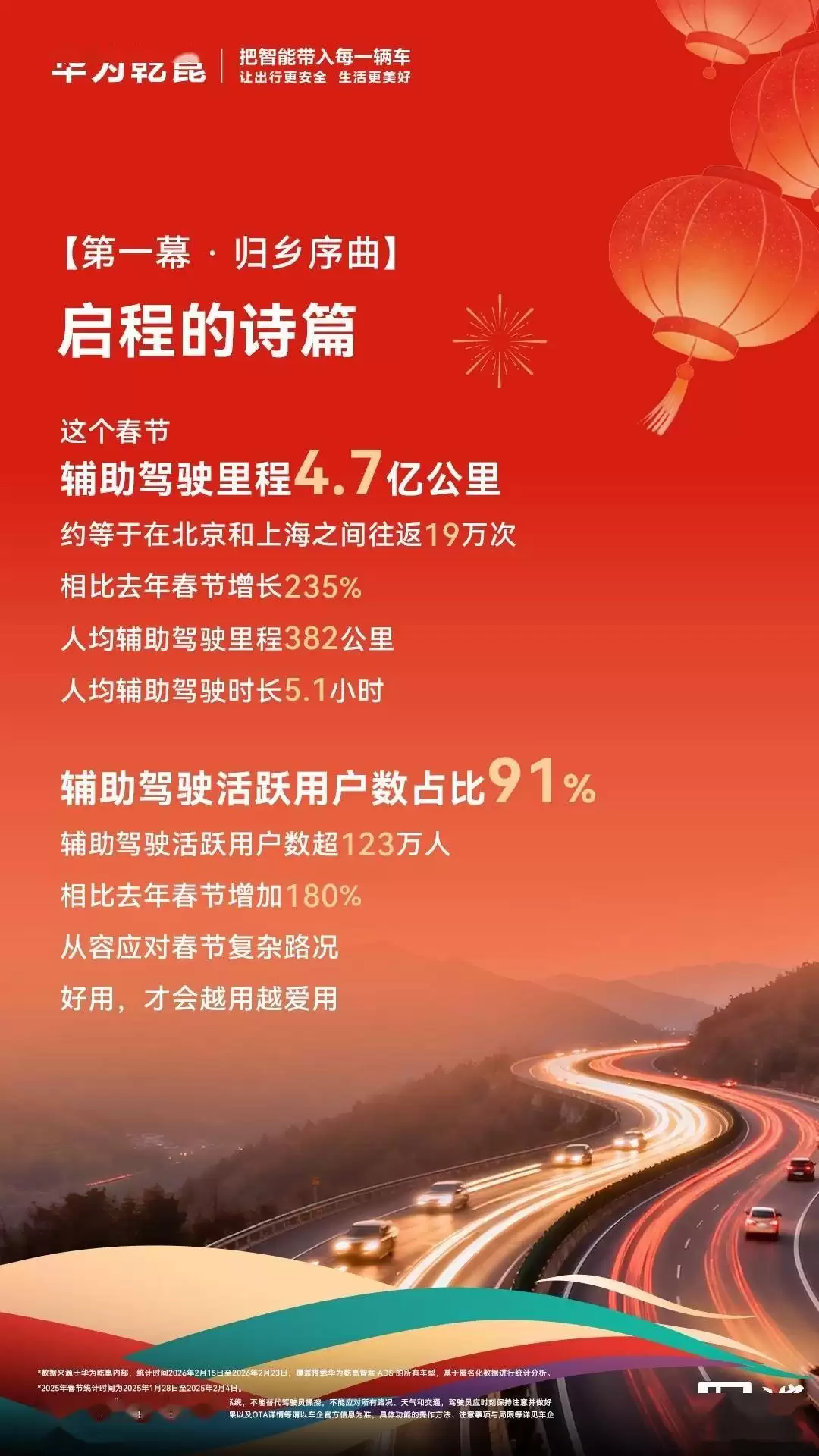 华为乾崑智驾累计使用超4000万次,春节辅助驾驶数据亮眼
