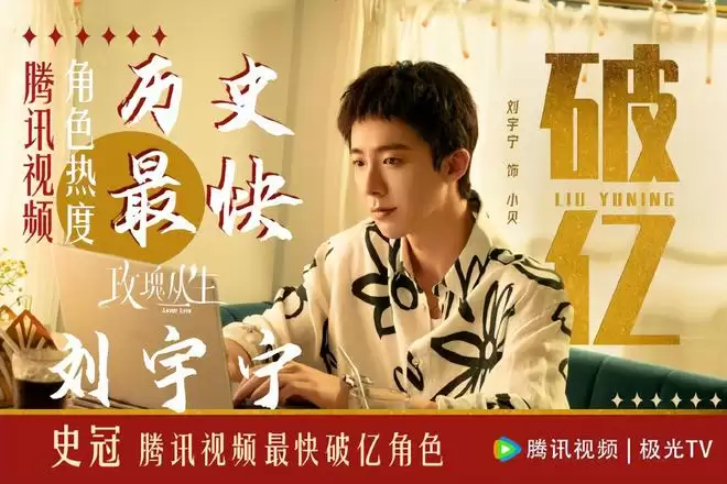 开播仅3分钟刘宇宁扮演的小贝腾讯视频站内热度破亿,成腾讯视频角色热度破亿史冠,创下腾讯视频史上最快破亿角色纪录!开局4广,站内热度2小时突破21000。