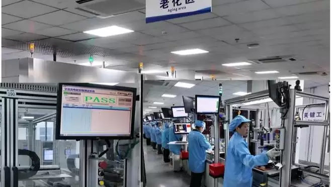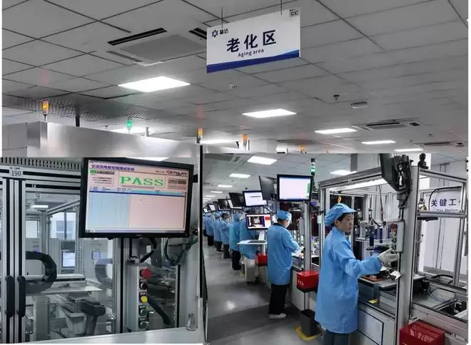 挚达科技有限公司安徽宣城工厂车间内的老化区自动测试场景