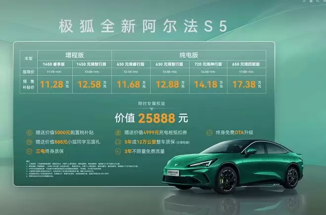 12、补贴价 11.28 万元起:极狐全新阿尔法 S5 开启预售,“智驾小蓝灯”上车