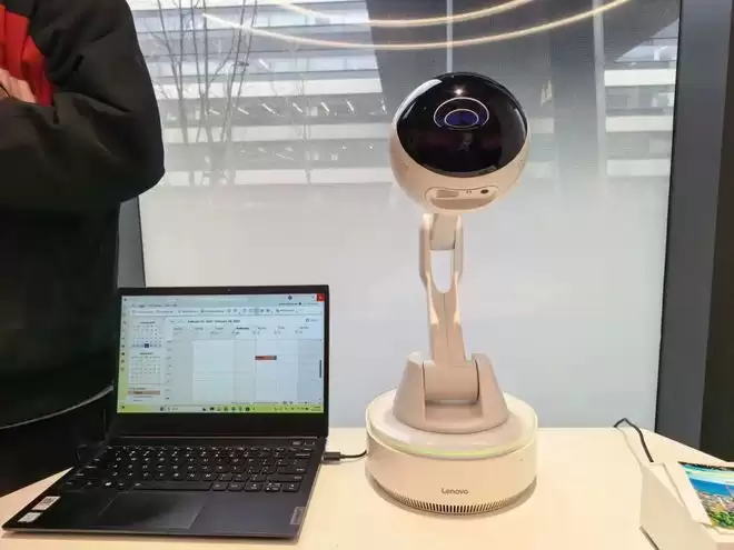 在今年 MWC 的展台上,联想也亮相了一款概念产品——联想 AI Workmate 概念机,给人们展示了,团队对于桌面办公机器人的「联想」。