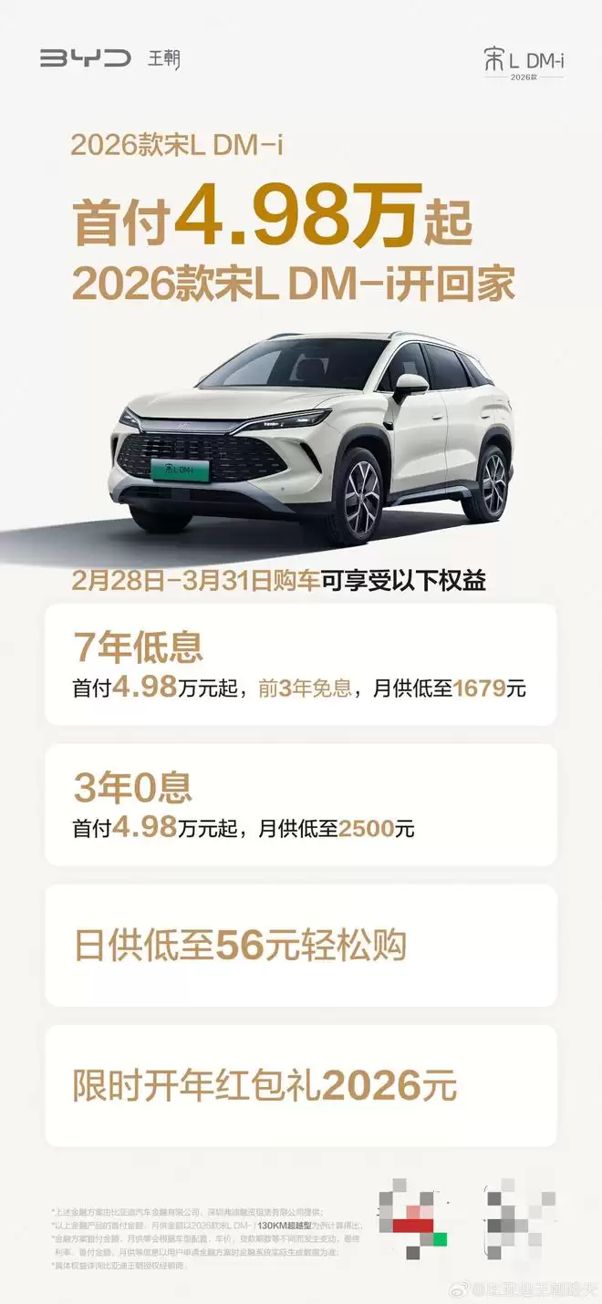 IT之家3月2日消息,比亚迪王朝网销售事业部总经理路天今日发布宋家族限时购车权益,首付3.98万元起,提供7年低息、3年0息金融方案。