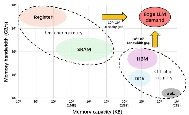 现有端侧存储方案不能同时满足LLM推理的存储容量和访存带宽需求