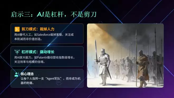 别只盯着用AI裁掉多少客服(像Salesforce那样),更要学Palantir,用AI去撬动营收的指数级增长。