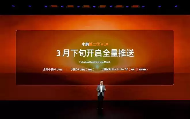 根据最新规划,小鹏第二代VLA将在3月下旬开启全量推送,最先覆盖全新P7 Ultra、G7 Ultra纯电、X9 Ultra和Ultra SE纯电、超级增程。