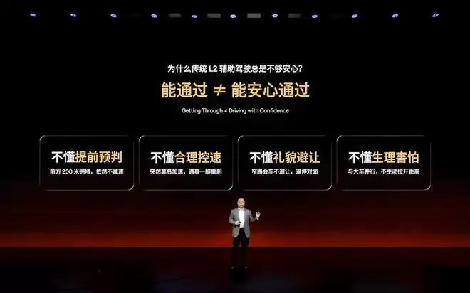▲何小鹏介绍传统L2辅助驾驶安全感不高的原因