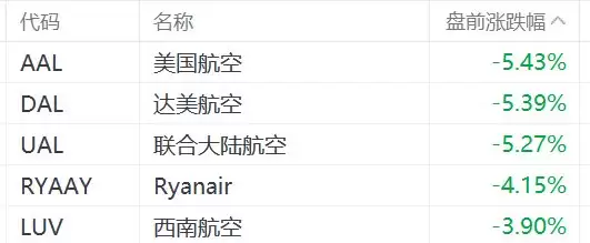 美股航空板块普跌:美国航空、达美航空与联合大陆跌幅超5%