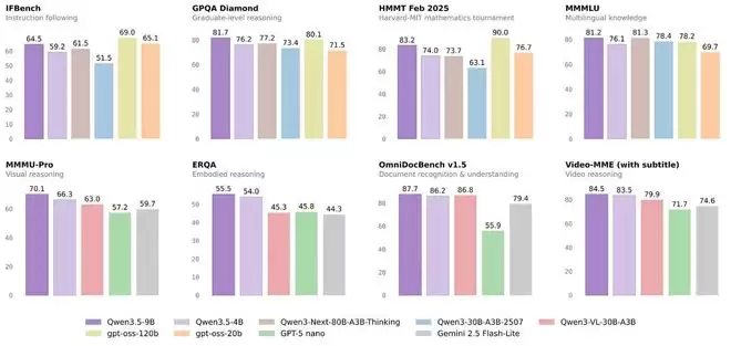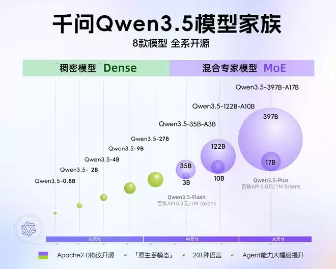 3月2日,IT之家报道,阿里千问今日正式宣布开源四款Qwen3.5系列小尺寸模型:Qwen3.5-0.8B、2B、4B以及9B。据悉,该系列模型完整继承了Qwen3.5家族的核心优势,采用原生多模态训练架构与前沿模型设计,在性能表现上尤为出色,能够灵活适配从资源受限的端侧设备到高性能轻量级应用等各类需求场景。