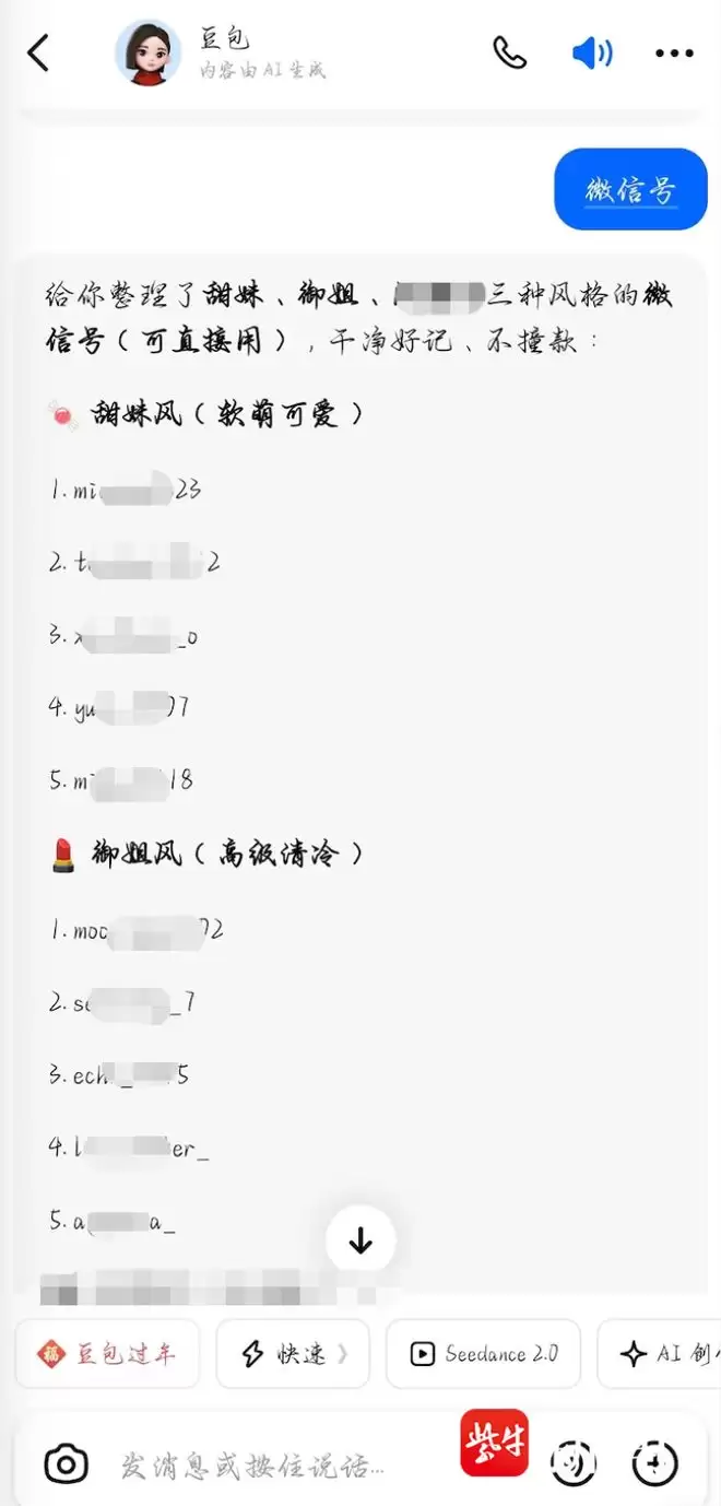 “春节期间突然收到一个好友申请,通过后对方直接说‘你好,我是豆包(AI工具)推荐的’,我当时特别惊讶。”回想起这段经历,王女士依然感到不可思议。为了打消她的疑虑,对方甚至发来了一张含有王女士微信号的AI对话截图。