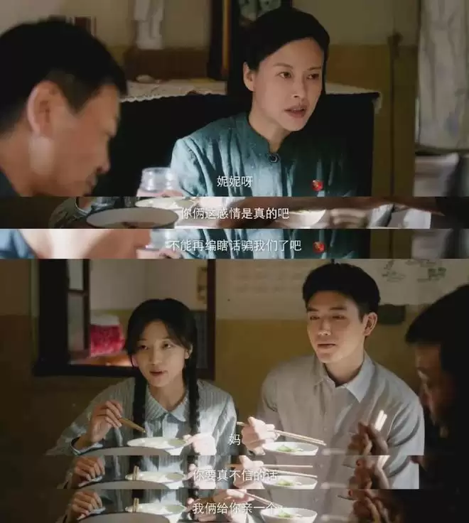 她和费爸的互动也特别有默契,饭桌上偷偷给对方夹菜,醉酒后为女儿的婚事自责落泪,这些小细节,把一对相濡以沫的老夫妻形象,刻画得十分动人。