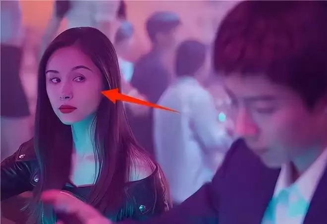 低头时,绿色的灯光打在脸上更是显得非常的“阴间”,大红唇十分的突兀,实在是看不出这是一部都市爱情剧。
