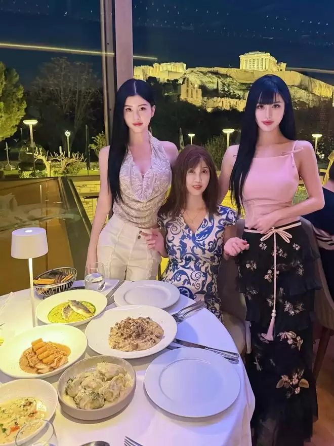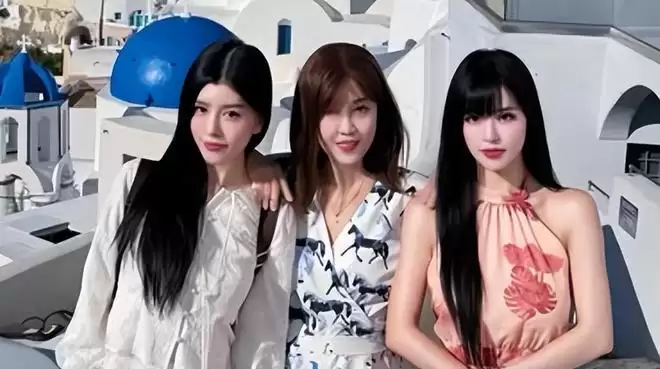 姐妹一起在希腊留下靓影,哇!超美的姐妹,尤其和妈妈一起出镜的时候,三个女人看着真的特别像姐妹。