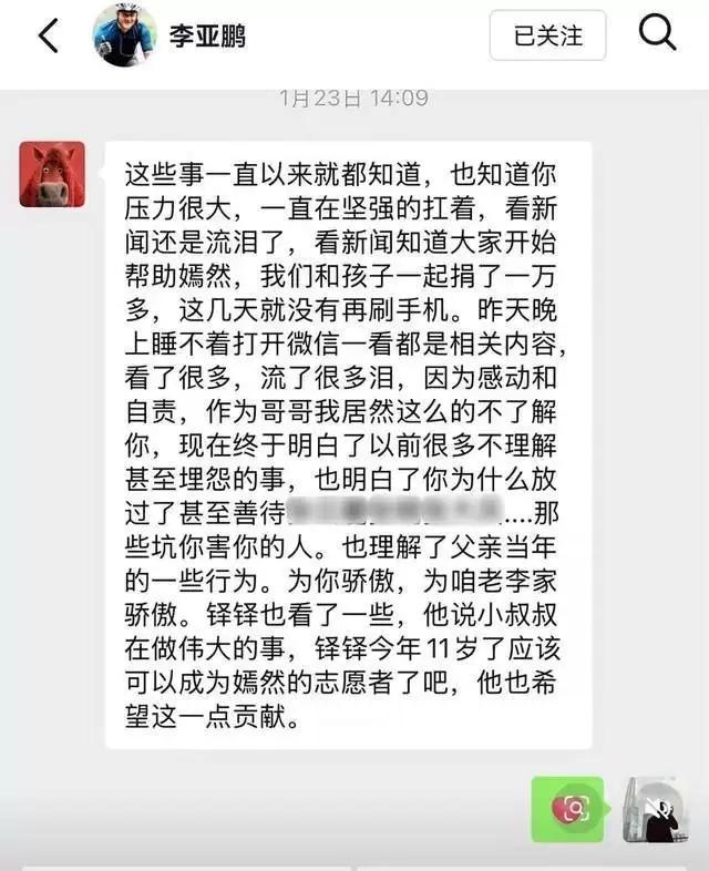 整件事的起因,只是哥哥主动发来的一条短信,李亚鹏自己说,看完那几句话,心里那座冻了多年的冰山,一下子就化了。