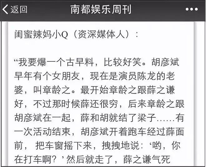 而胡彦斌为何这样?原因是有爆料称薛之谦胡彦斌曾先后与章龄之恋爱,当时薛之谦穷,章龄之就跟胡彦斌恋爱了,两人因此结下梁子,后来胡彦斌还在跑车上羞辱薛之谦。
